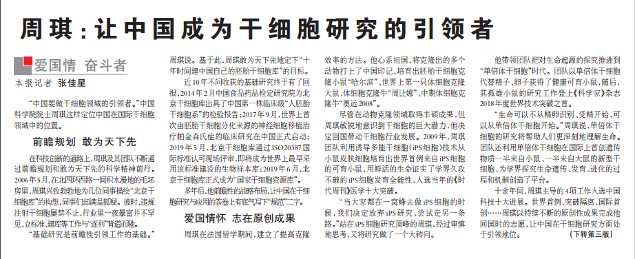 《科技日報》周琪:讓中國成為干細胞研究的引領(lǐng)者
