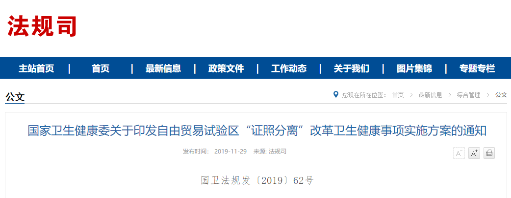 近日,國(guó)家衛(wèi)健委發(fā)布《關(guān)于印發(fā)自由貿(mào)易試驗(yàn)區(qū)“證照分離”改革衛(wèi)生健康事項(xiàng)實(shí)施方案的通知》(以下簡(jiǎn)稱《通知》),公布12個(gè)醫(yī)改實(shí)施方案。此次衛(wèi)生健康領(lǐng)域的“證照分離”是要貫徹落實(shí)《國(guó)務(wù)院關(guān)于在自由貿(mào)易試驗(yàn)區(qū)開(kāi)展“證照分離”改革全覆蓋試點(diǎn)的通知》…