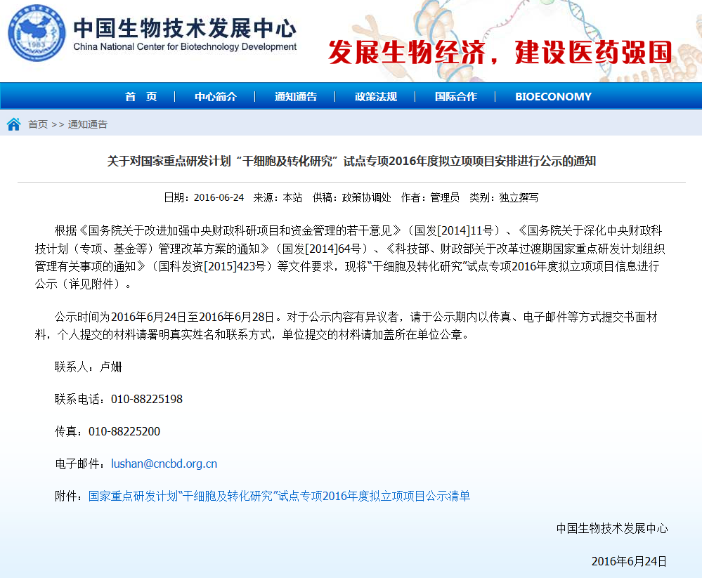 【公示通知】國家重點(diǎn)研發(fā)計(jì)劃“干細(xì)胞及轉(zhuǎn)化研究”試點(diǎn)專項(xiàng)2016…