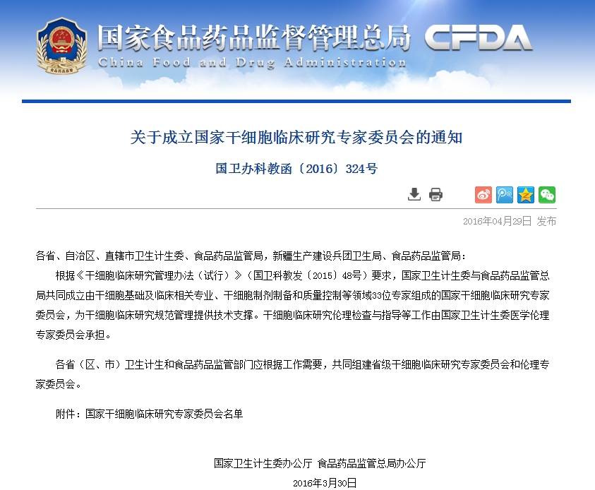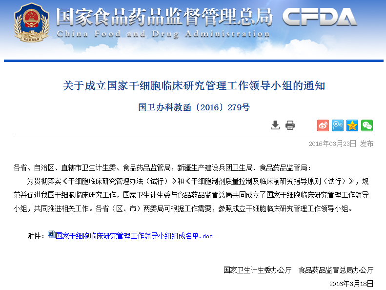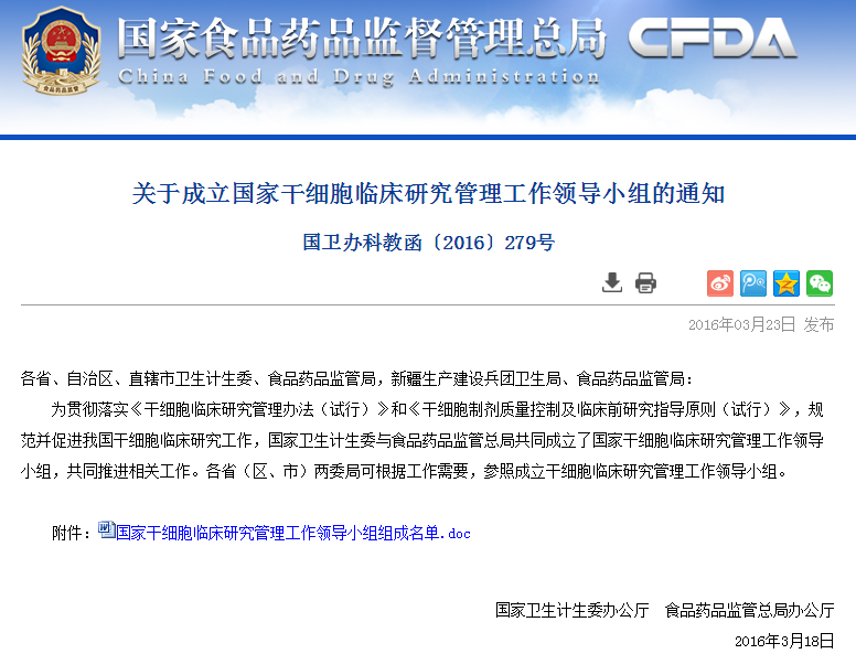 【重磅來襲】衛(wèi)計(jì)委、食品藥品監(jiān)管總局成立國家干細(xì)胞臨床研究?!?/strong>